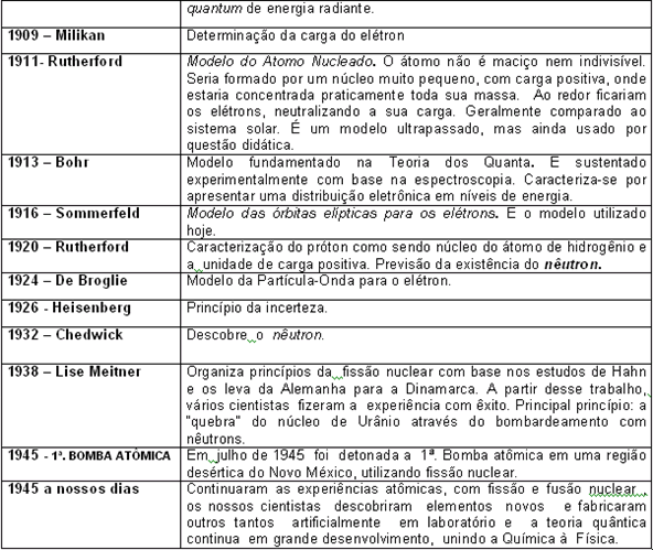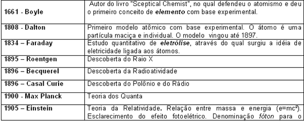 Muitos séculos se passaram desde Demócrito até que fosse formulada uma teoria atômica moderna. São descobertas importantes as seguintes :