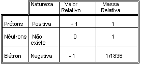 Carga Elétrica atômica : é a possuída pelas suas partículas, na proporção da tabelinha abaixo. O número de nêutrons é sempre o mesmo do de prótons. Se assim não fosse não haveria estabilidade nuclear.