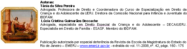22 - Tânia da Silva Pereira e Carolina de Campos Melo. “Infância e Juventude: os direitos fundamentais e os princípios constitucionais consolidados na Constituição de 1988”. In Revista Trimestral de Direito Civil n.3. Rio de Janeiro: Padma, 2000, p.109.