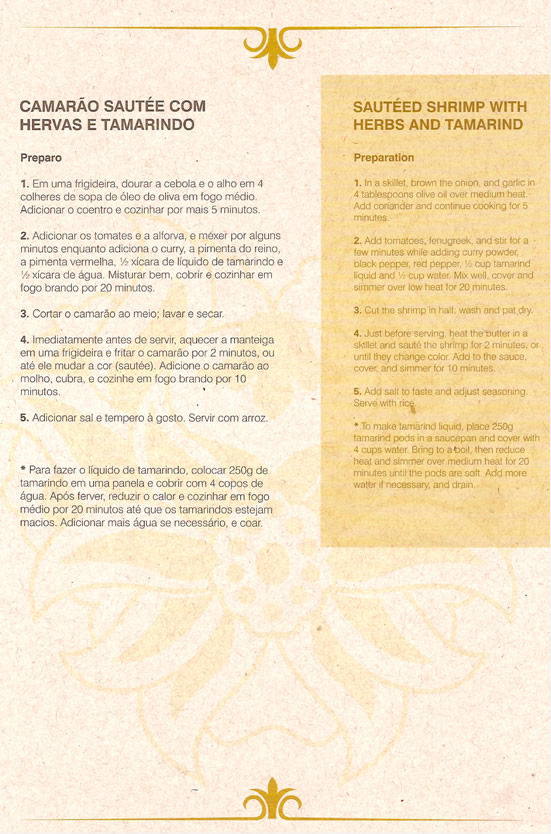 Camarão sautée com ervas e tamarindo - Sautéed shrinp with herbs and tamarind