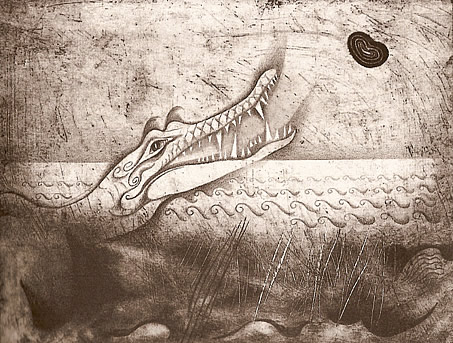 " Fica avisado, a tua vez vai chegar, avarento danado", esbraveja o crocodilo que mergulha na água mais profunda da beira do lago, para enganar as terríveis cólicas de seu ventre. Mas é impossível dormir, tal é sua fome , tanta, que por um pouco não come a própria cauda.