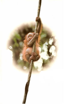 O macaco se sobressalta de medo, mas logo em seguida ele tem uma idéia para se defender e responde :