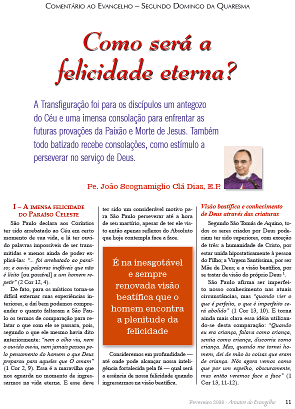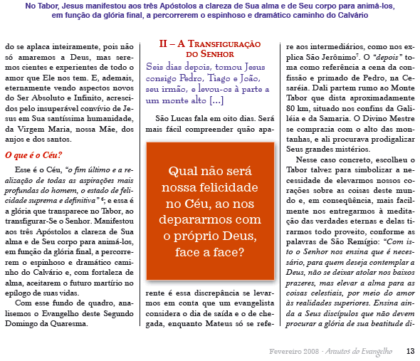 O céu, um lugar também imaterial? Transcrição: Arautos do Evangelho, nº70 Outubro de 2007, págs. 24-25 - www.arautos.org.br